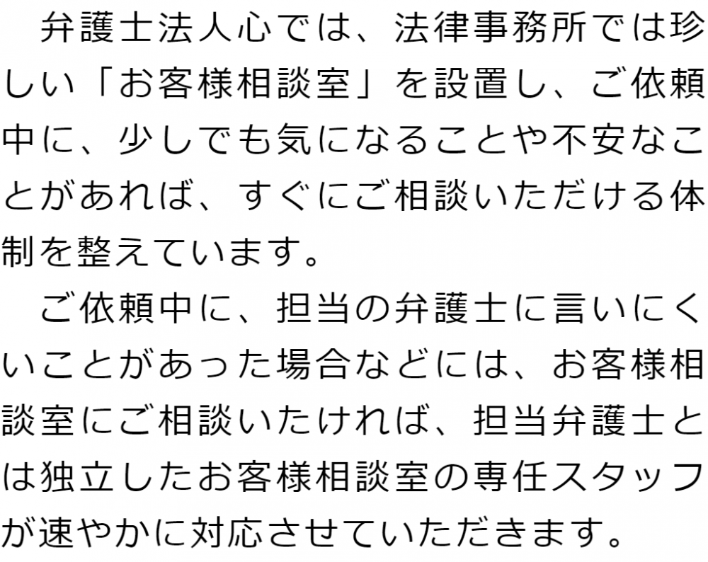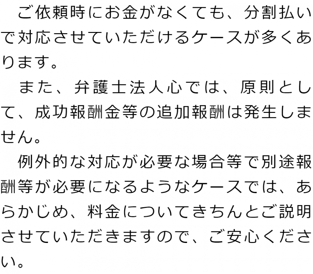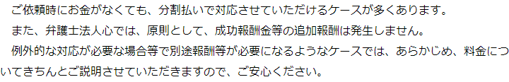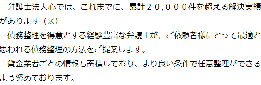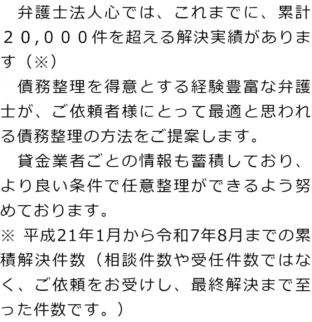 選ばれる理由相談料無料で何度でも相談可能!借金問題について20,000件以上の解決実績!弁護士費用は分割払い可能、追加報酬無し!借金の秘密が知られないように最大限配慮!お客様相談室があるため安心! 相談料無料で何度でも相談可能!借金問題について20,000件以上の解決実績!弁護士費用は分割払い可能、追加報酬無し!借金の秘密が知られないように最大限配慮!お客様相談室があるため安心!